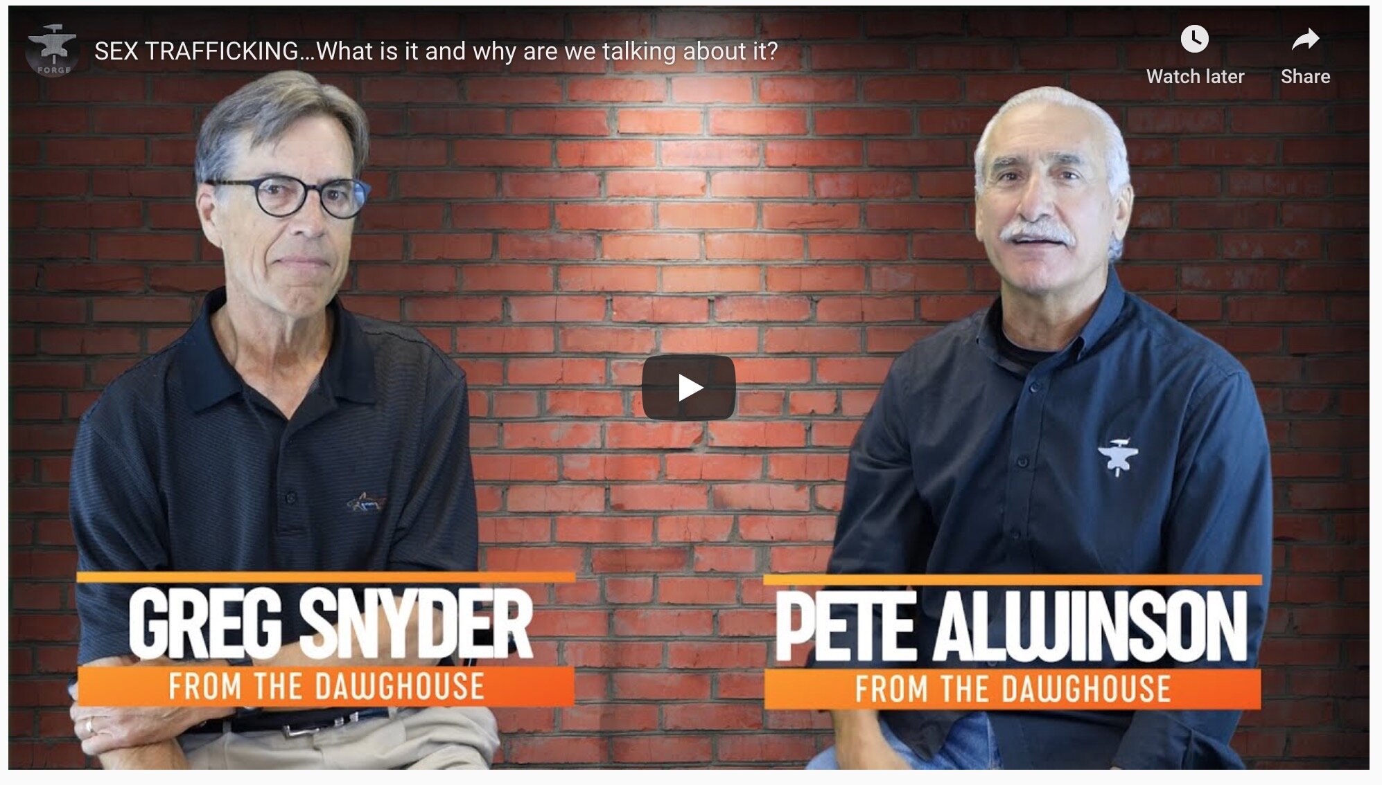 SEX TRAFFICKING…What is it and why are we talking about it? You can find out more by watching the attached video conversation Pete Alwinson has with his friend Greg Snyder, a leader in a new ministry in Greater Orlando called: SAFE. This is a men’s issue and we need to know more about it as Christian men and more importantly, do something about it. Watch this video!